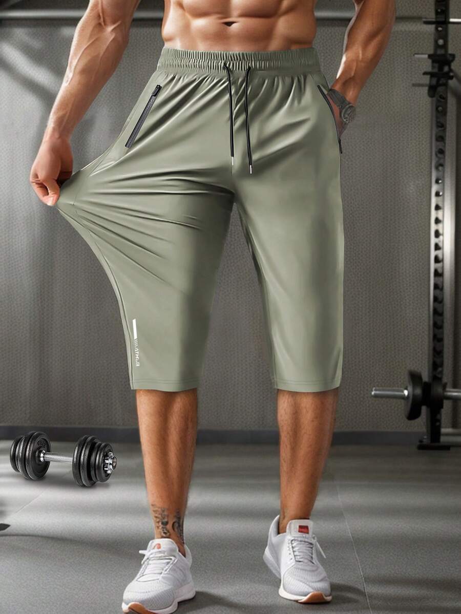 [Spring/Summer] Men's Active Shorts, High Elasticity, Casual Style, Solid Color, Regular Fit, Woven Fabric With 80% Polyamide And 20% Elastane, With Drawstring Waist And Zip Pockets, For Sports And Daily Wear