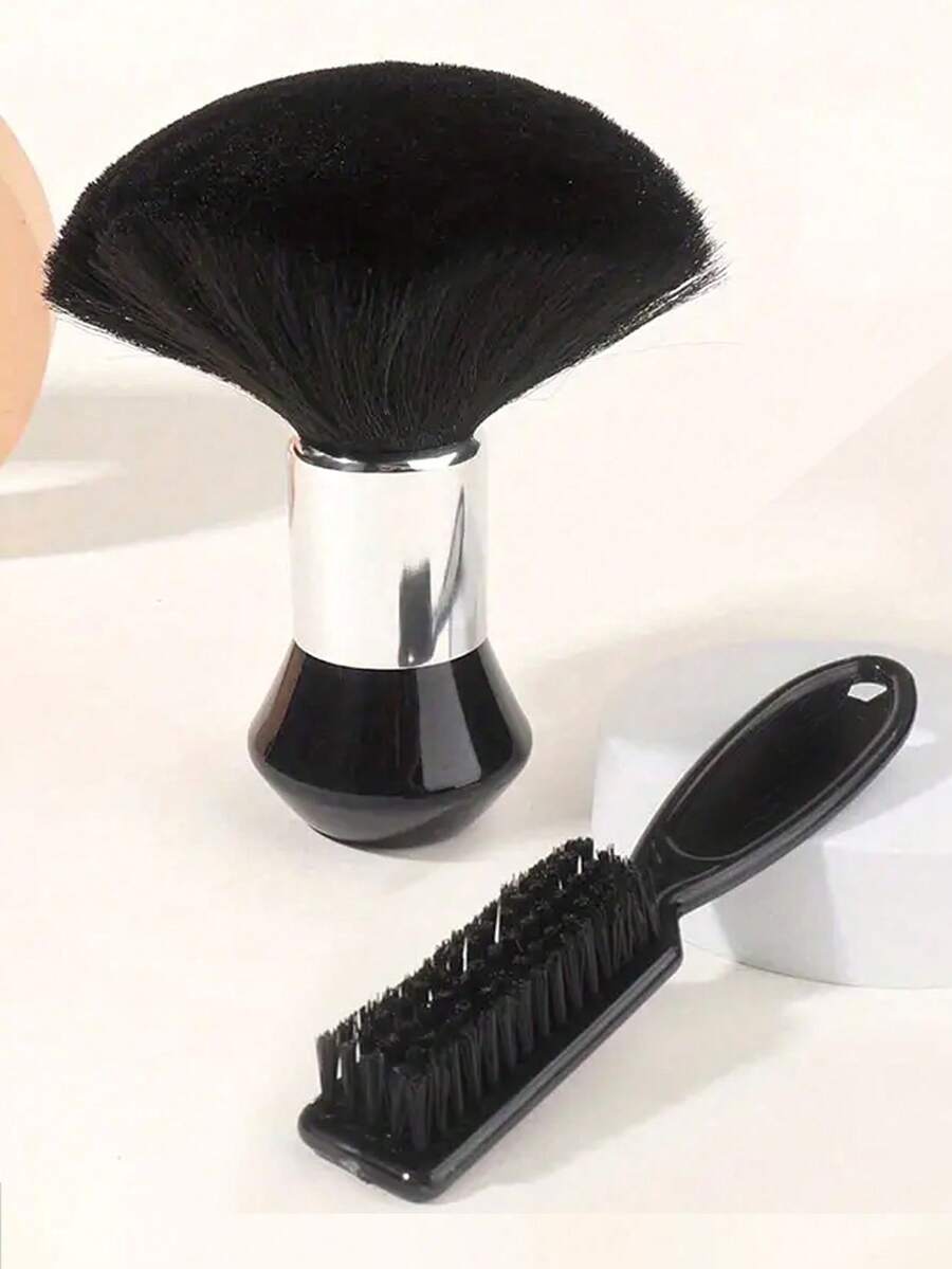 1/2pcs Black Barber Hair Brush Set, Men's Shaving Soft Brush & Makeup Cleaning Salon Tool With Black Abs Handle Premium Hair Styling Brush Set - Durable Nylon Bristles For Smooth Styling, Professional Barber Clipper & Trimmer Cleaning Brush, Perfect Beard Grooming Essential