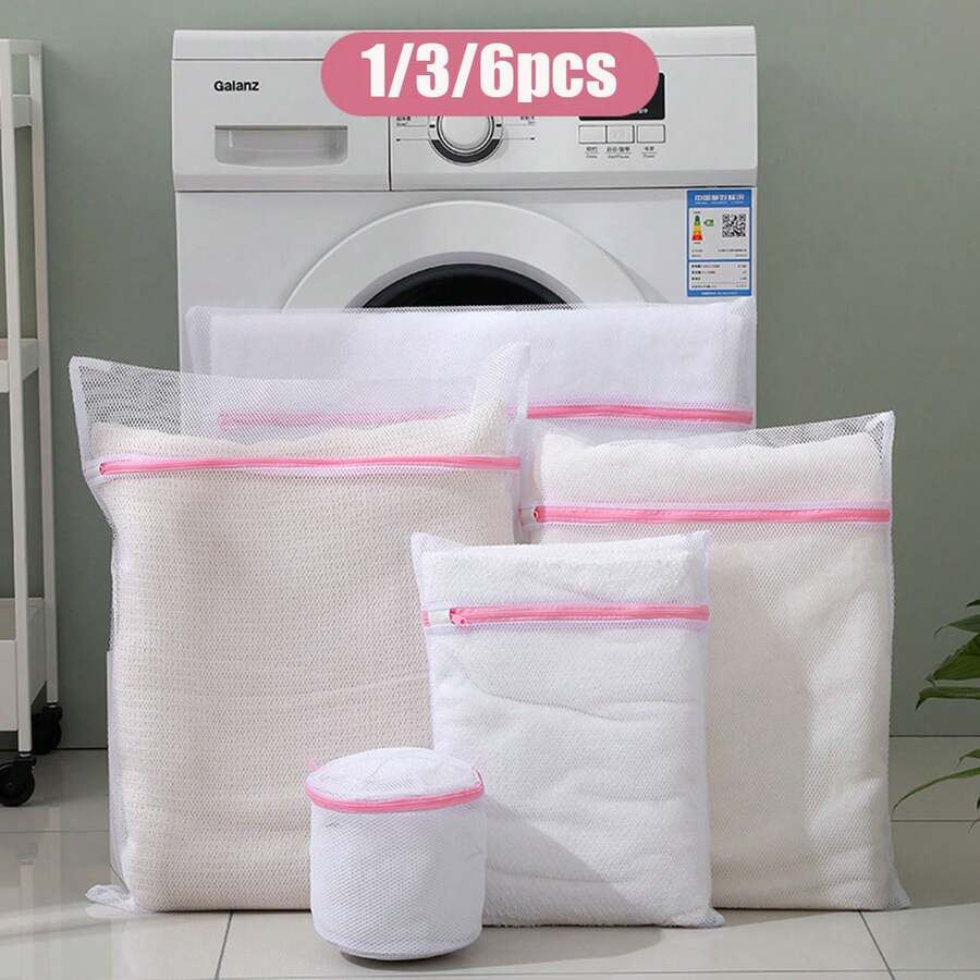 1/3/6pcs Nylon Zippered Laundry Bags, Garment Care Bags, Washing Mesh Bags, Knit Fabrics Protection Net Bags Set, For Clothing Washing Protection, Machine Washable, Household Use,Spring,Minimalist,Summer Tops