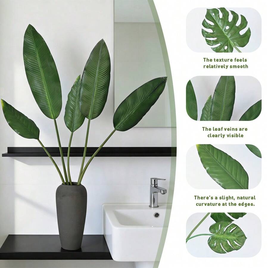1/3 Pcs Artificial Monstera Leaves With Long Stems For Vase - Fake Tropical Plant Palm Leaves Realistic Turtle Leaf/Banana Leaf Suitable For Home Wedding Party Decoration Indoor Outdoor Home Office Garden Living Room Decoration