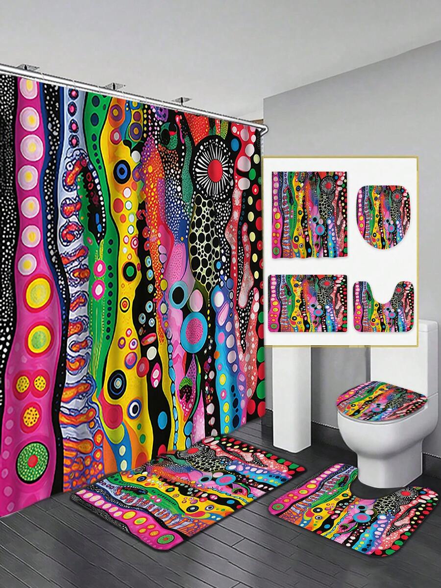 1/4pcs Creative Abstract Polyester Fabric Shower Curtain With 12 Hooks, 70.8X70.8 Inches