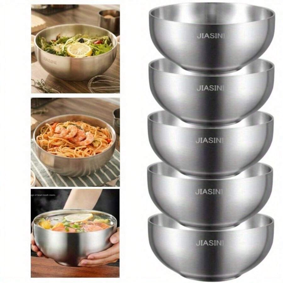 1-5pcs Stainless Steel Double Layer Bowls, Large Capacity, Heat Insulation, Suitable For Eating, Soup, Home Use