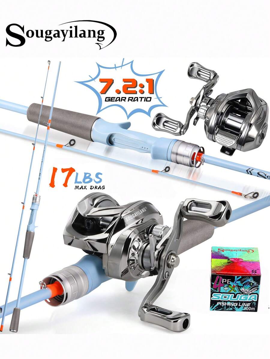 1.8M Ultralight Carbon Fiber Casting Fishing Rod 8-17LB Ceramic Guide 7.2:1 GR Baitcasting Reel High-Strength Engineering Materials 8KG Max Drag Durable For Freshwater &Saltwater Fishing Line Model Random