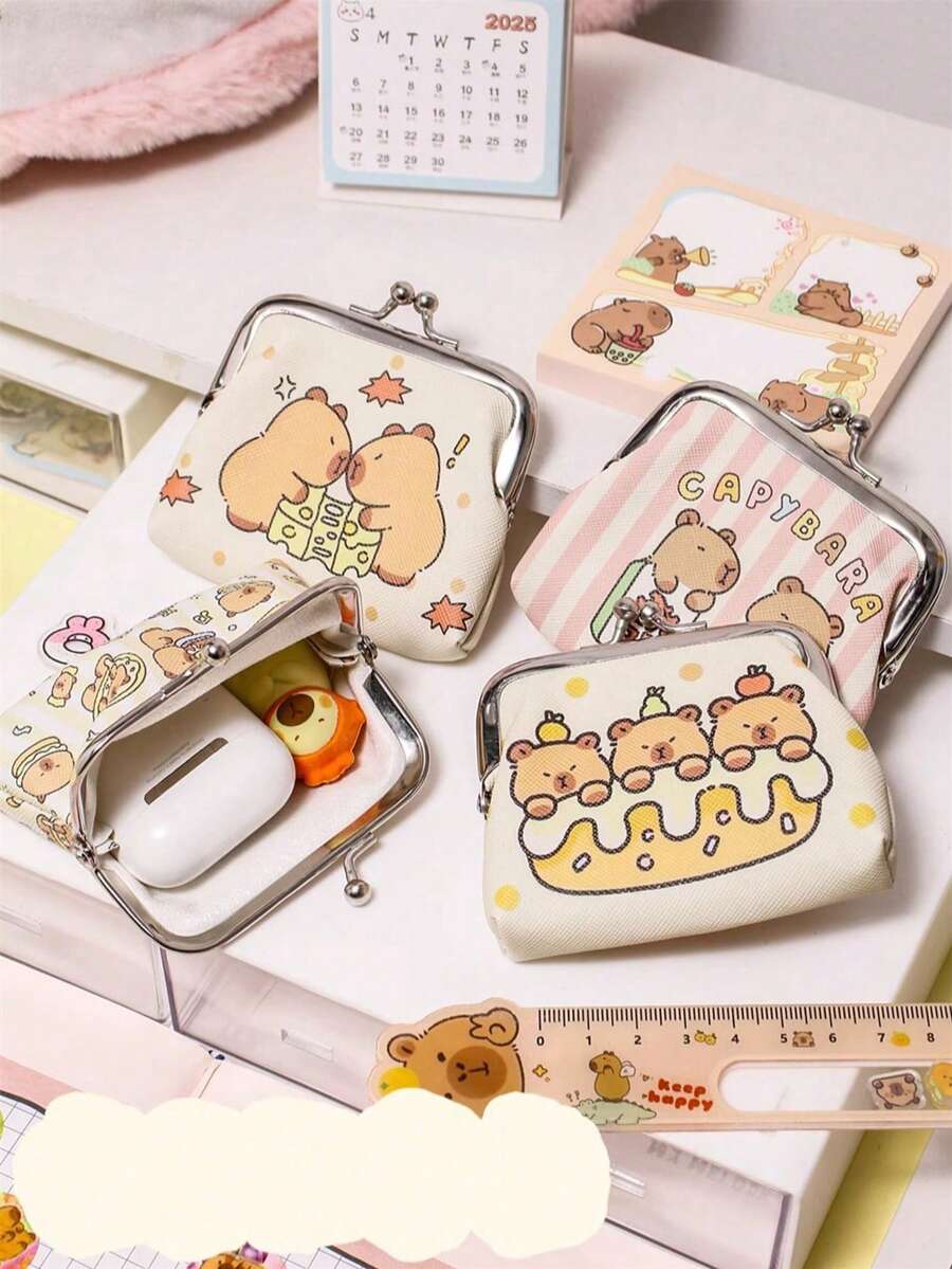 • 1 PC Capybara Cute PU Zero Money Bag Cartoon Mini Earphone Bag Storage Bag Coin Bag - Multicolor - View 14