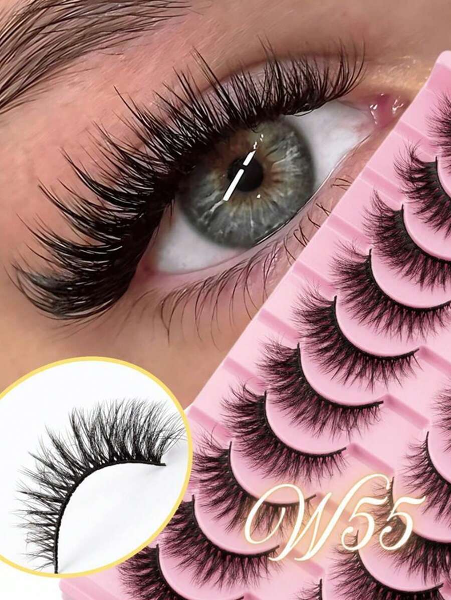 10 Pairs 3D Delicate False Eyelashes, Fluffy And Lightweight, Imitating Cat Eye, Suitable For Parties, Daily Makeup, Natural Anime Style