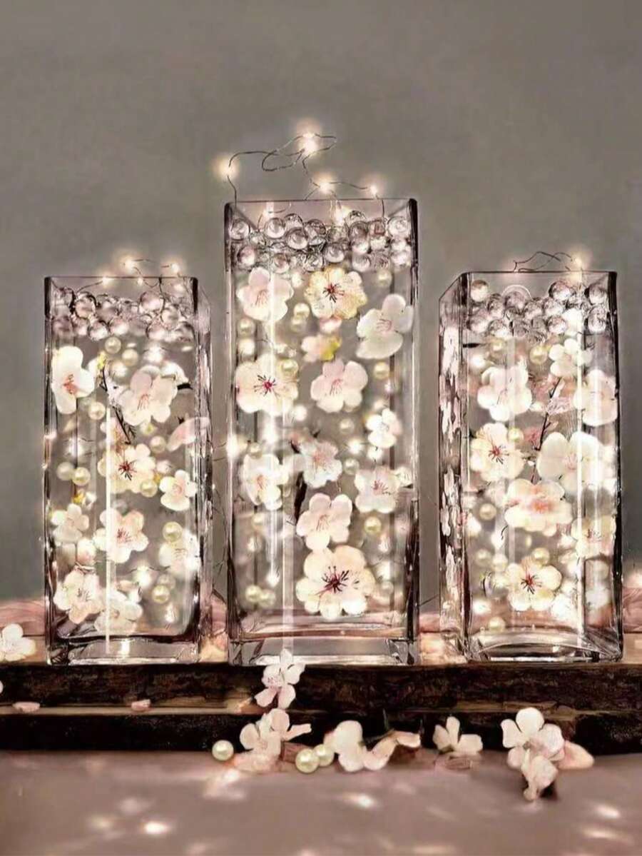 • 100pcs Artificial Cherry Blossoms And 5000pcs Water Beads Set, For Vase Decor, Vase Filler, Floating Candle Center Decor, DIY Wedding Decor, Valentine's Day Decor, Theme Party, Bar & Restaurant Decor, Home Decor, Room Decor, Glass Vase Decor - White - View 9