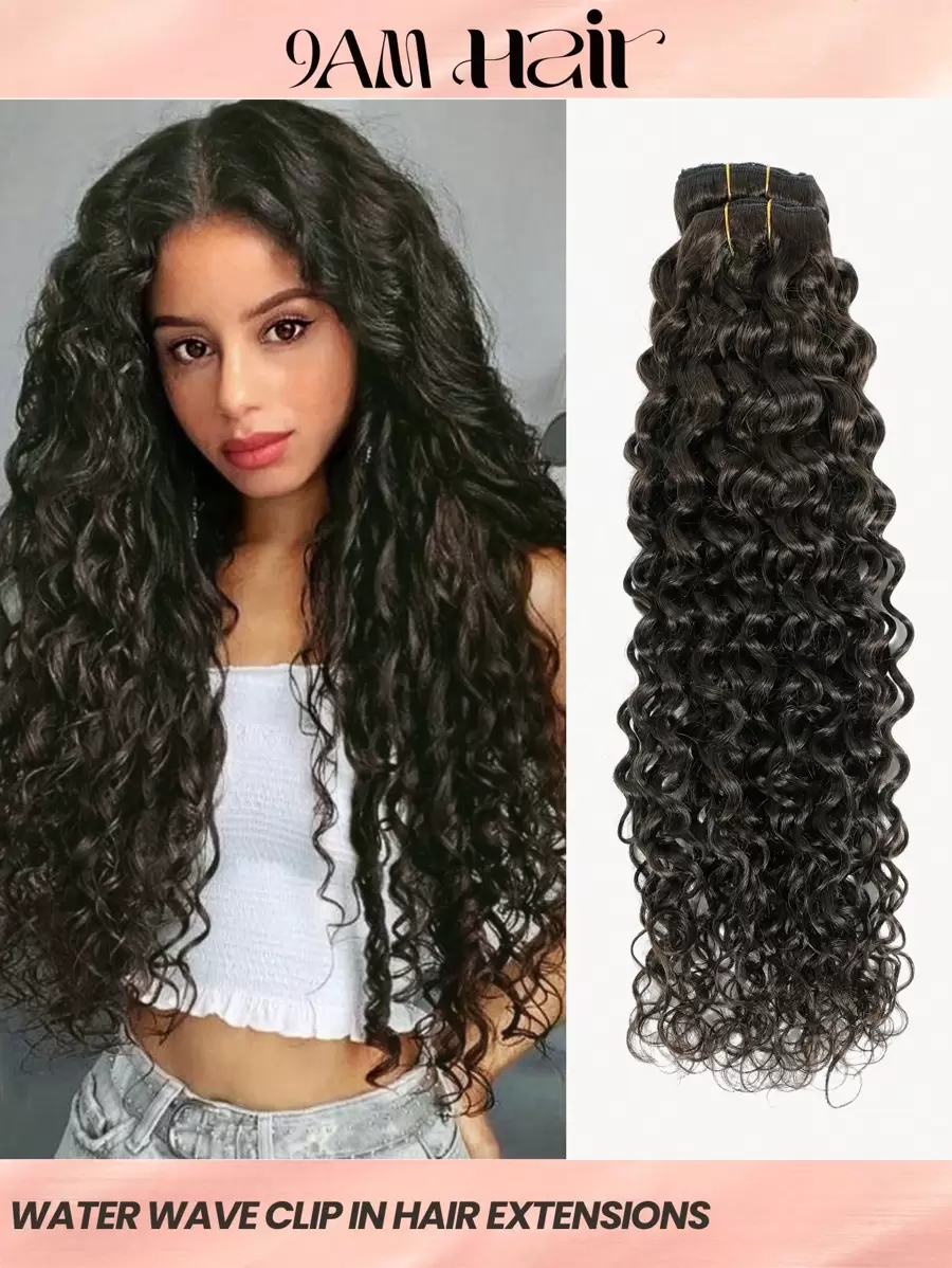 10PCS Water Wave Hair Extensions Clip In Real Human Hair Dark Brown Clip In Hair Extensions 14-20" Human Hair Extensions For Women Clip Ins Hair Extension