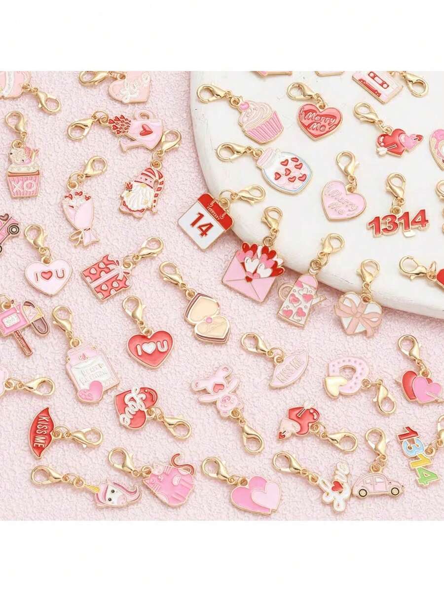 10pcs/Set Random Valentine's Day Theme Red & Pink Heart Keychains Set, Includes Heart & Bouquet Shaped Alloy Pendants, Unique Design, Surprise Gift. Elegant Gift Suitable For Holidays, Birthdays, And Parties.