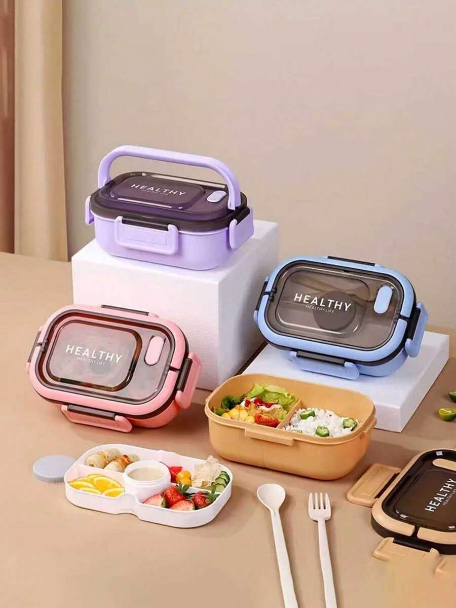 1200ML/42oz 2-Layer PP5 Plastic Portable Lunch Box, Microwave , Compartment Design With Sauce Containers And Utensils, Lightweight Bento Box