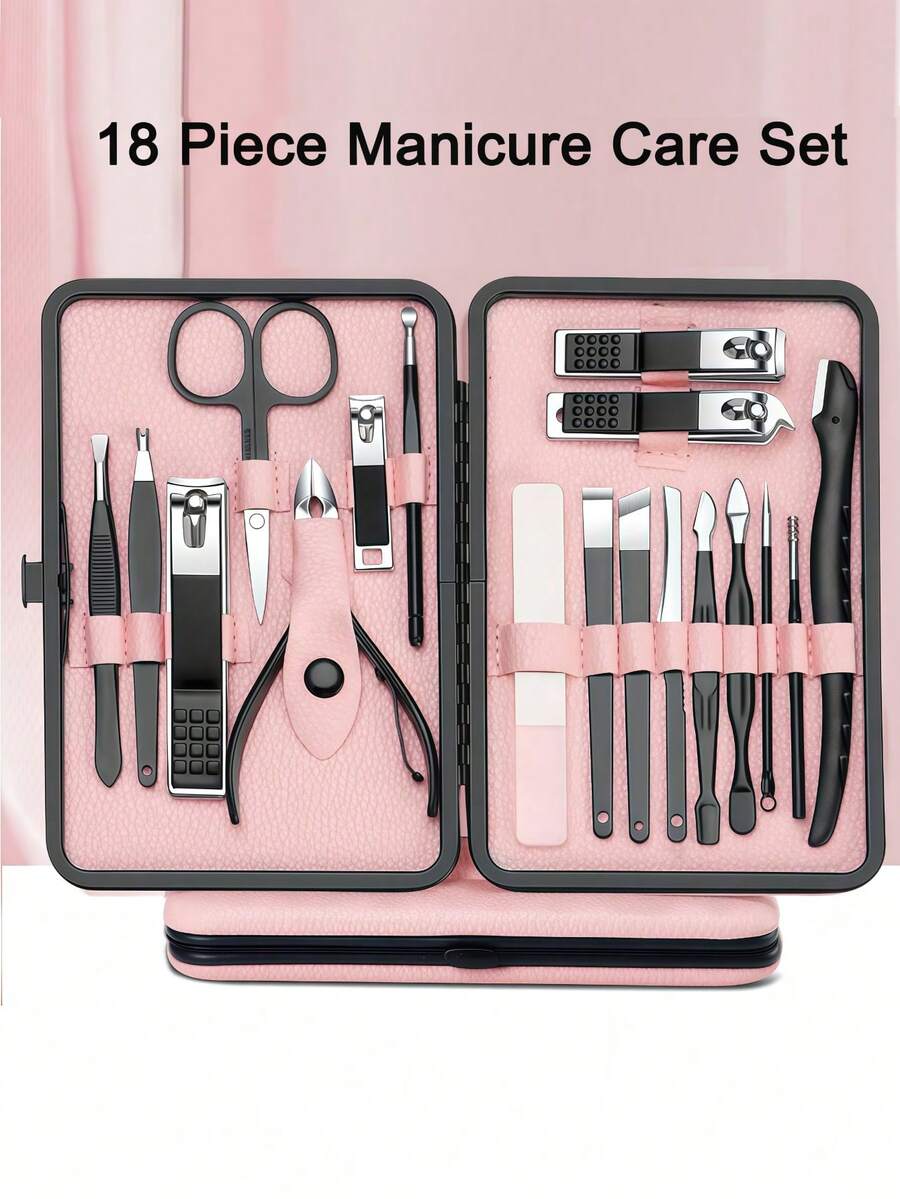 18pcs Classic Manicure & Pedicure Tool Kit, Includes Nail Clipper, Cuticle Nipper, Tweezers, Nail File And Stainless Steel Cuticle Pusher - Fragrance-Free Manicure & Pedicure Set