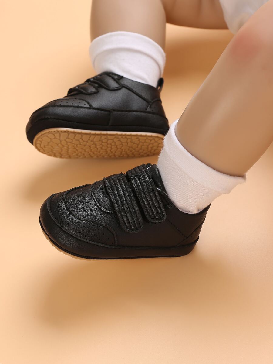 1pair Baby Boys' Minimalist Style Casual Sports Shoes With Hook-And-Loop Fasteners, Black