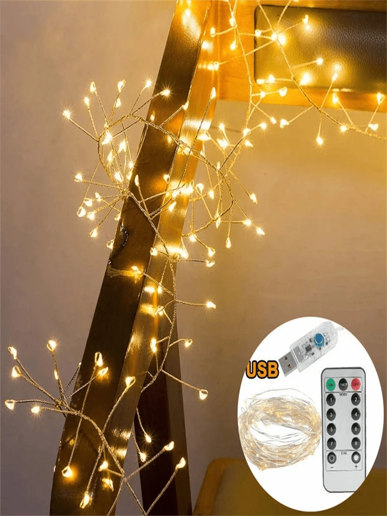 1pc 50/100 USB Powered Fairy String Lights, Flashing Firecracker Lights, LED Warm Light Firecracker String Lights, With Remote Control, 8 Lighting Modes, Bendable DIY Styling, Used For Decorating Bedrooms, Parties, Weddings, Flower Garlands,Wedding, Party