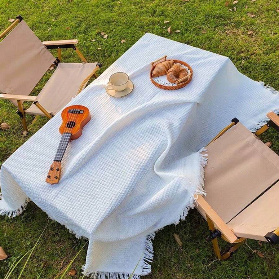 1pc Bohemian Cotton Crochet Tablecloth With Tassel Trim, Suitable For Parties, Weddings, Picnics, Kitchen And Restaurant Dining Table - White