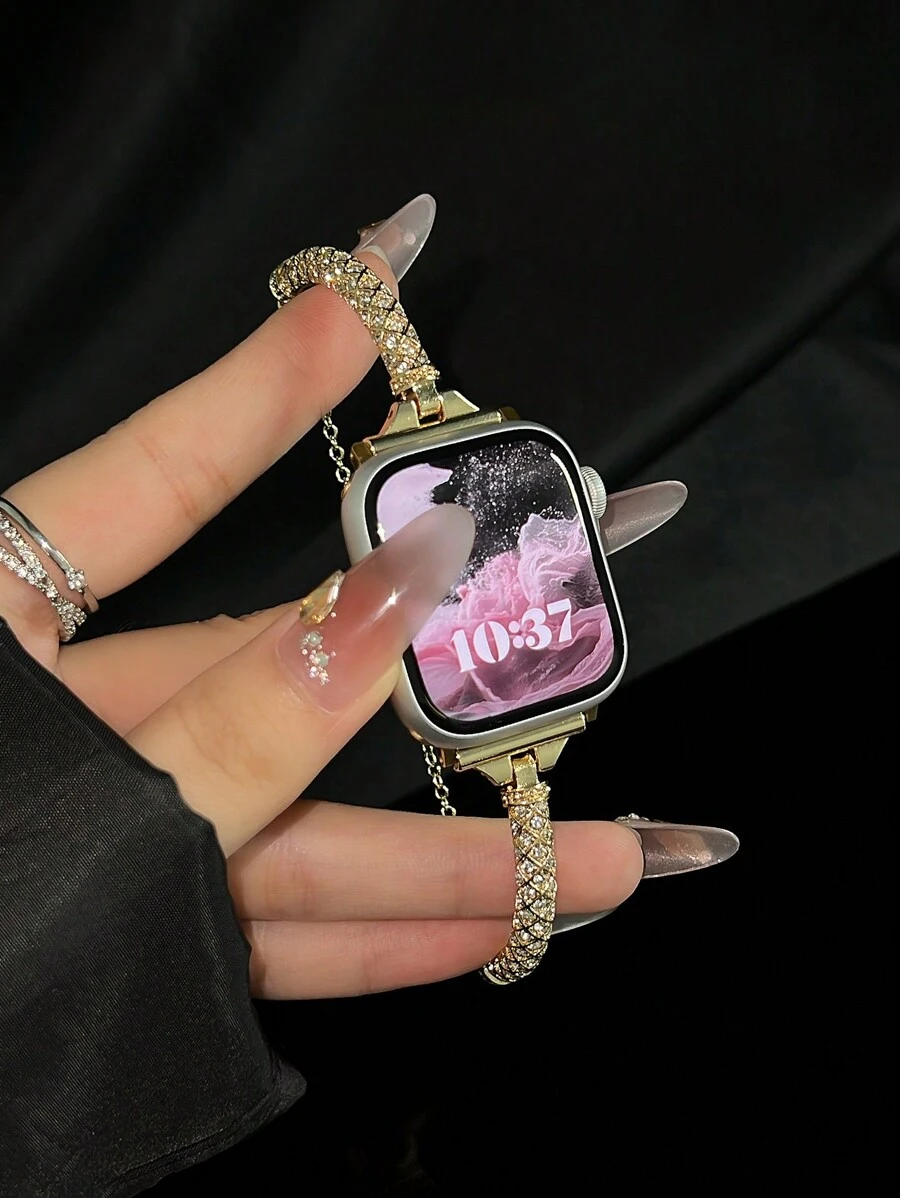 1pc Compatible With Apple Watch Band Women's Exquisite Slim Metal Bracelet With Rhinestone Smart Band, Compatible With Apple Watch38/40/41/42/44/45/46/49mm, Compatible With Apple Watch Series Ultra/SE/10/9/8/7/6/5/4/3/2/1, Length Can Be Adjusted Without Tools, Cute And Considerate Business Metal Bracelet, Can Be Matched With Any Outfit, Can Also Be Given As A Girlfriend's Birthday Gift Valentine's Day Gift