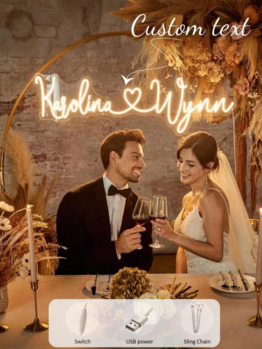 1pc Customized Personalised Dimmable Neon Sign, Custom Led Neon Sign Room Decor, Personalized Wedding Neon Sign Valentine's Day Gift ,Festival Neon Sign Home Decoration Wedding Backdrop USB Power, Romantic Home Decor, Perfect For Wall Decor
