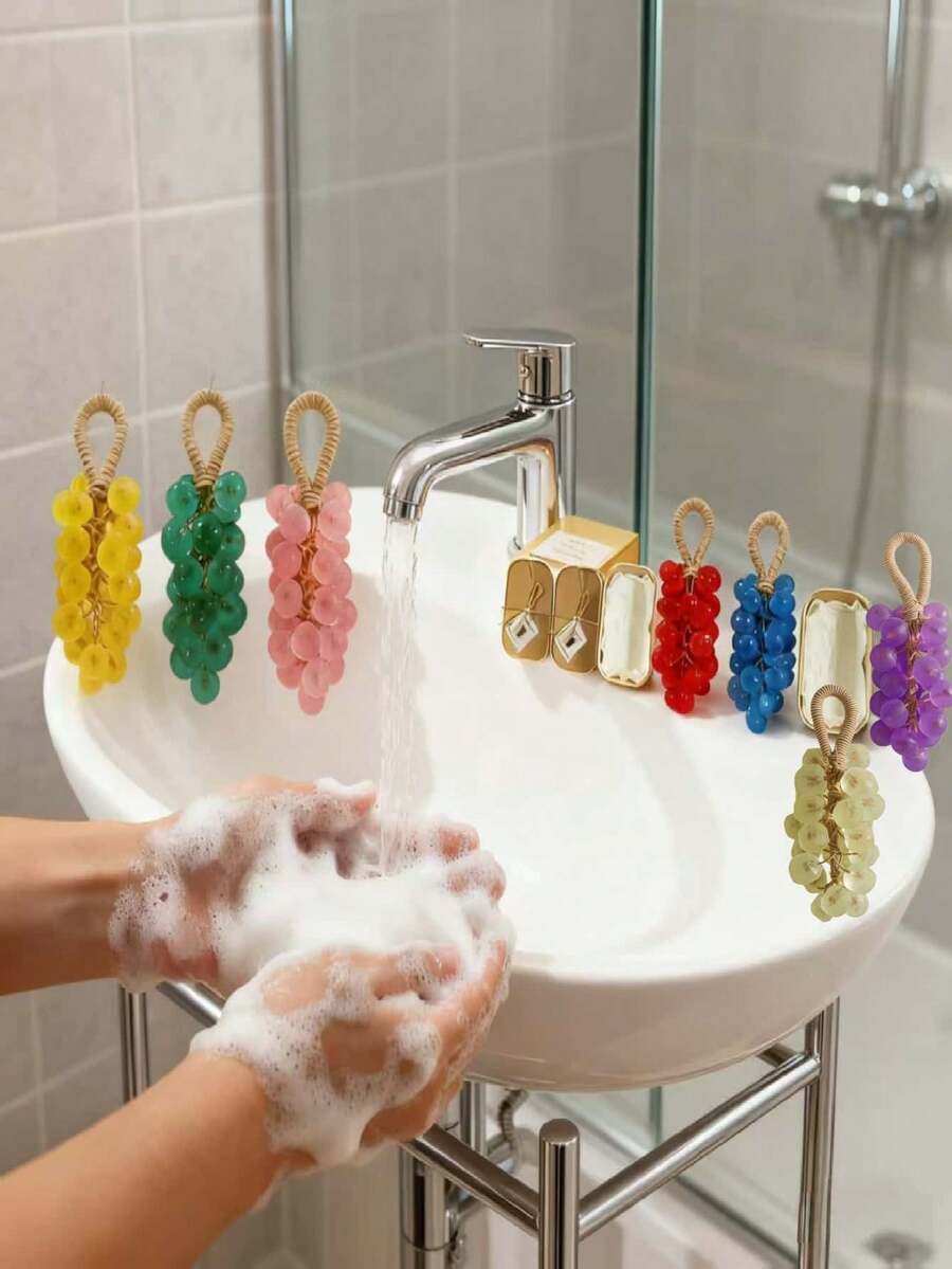 1pc Dopamine Grape Soap, 7 Colors Portable Hand Beauty Cleansing Soap, Grape Scented Soap - Hand Repair Savior For Dry, Rough Skin In Autumn/Winter, 3-In-1 Hand Wash Soap To Keep Hands Clean, Lightly Scented, And Maintain Soft Skin
