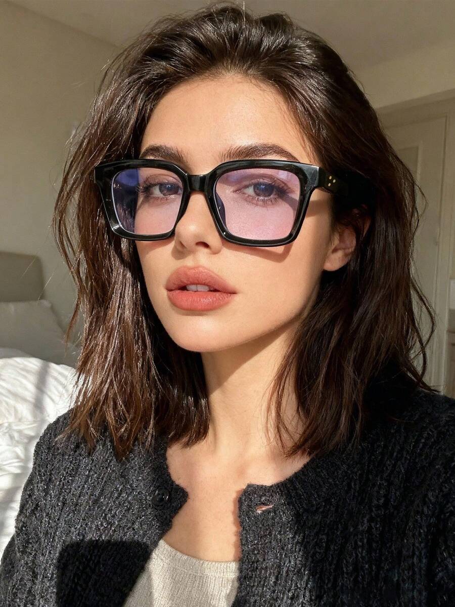 1pc European & American Fashion Square Clear Lens Rivet Street Style Eyeglasses Frame, Business Crossborder Glasses