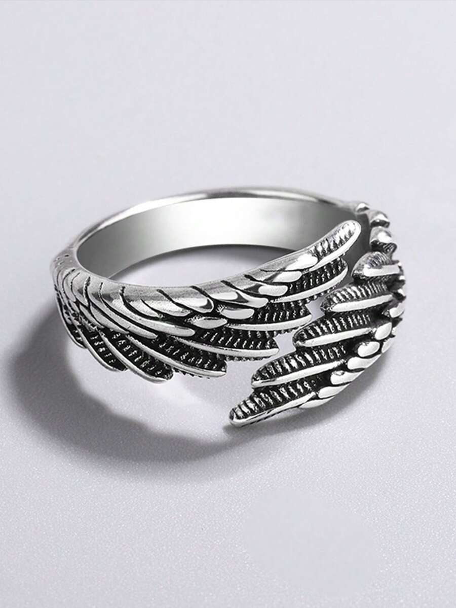 1pc Fashion Personalized High-End Chic Simple Vintage Feather Decor Adjustable Open Ring, Suitable For Men And Women Daily Wear