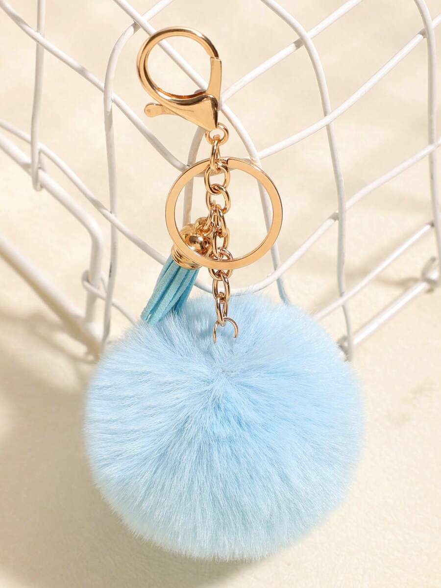 1pc Light Blue Faux Fur Pom Pom Tassel Keychain, Bag Charm