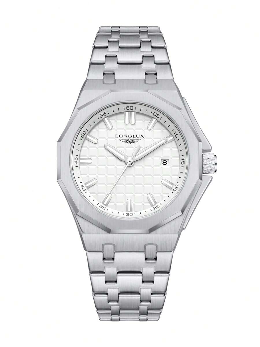 LONGLUX 1pc Men's Automatic Mechanical Watch With Calendar, Butterfly Buckle Steel Band, Waterproof, Casual & Minimalist Design