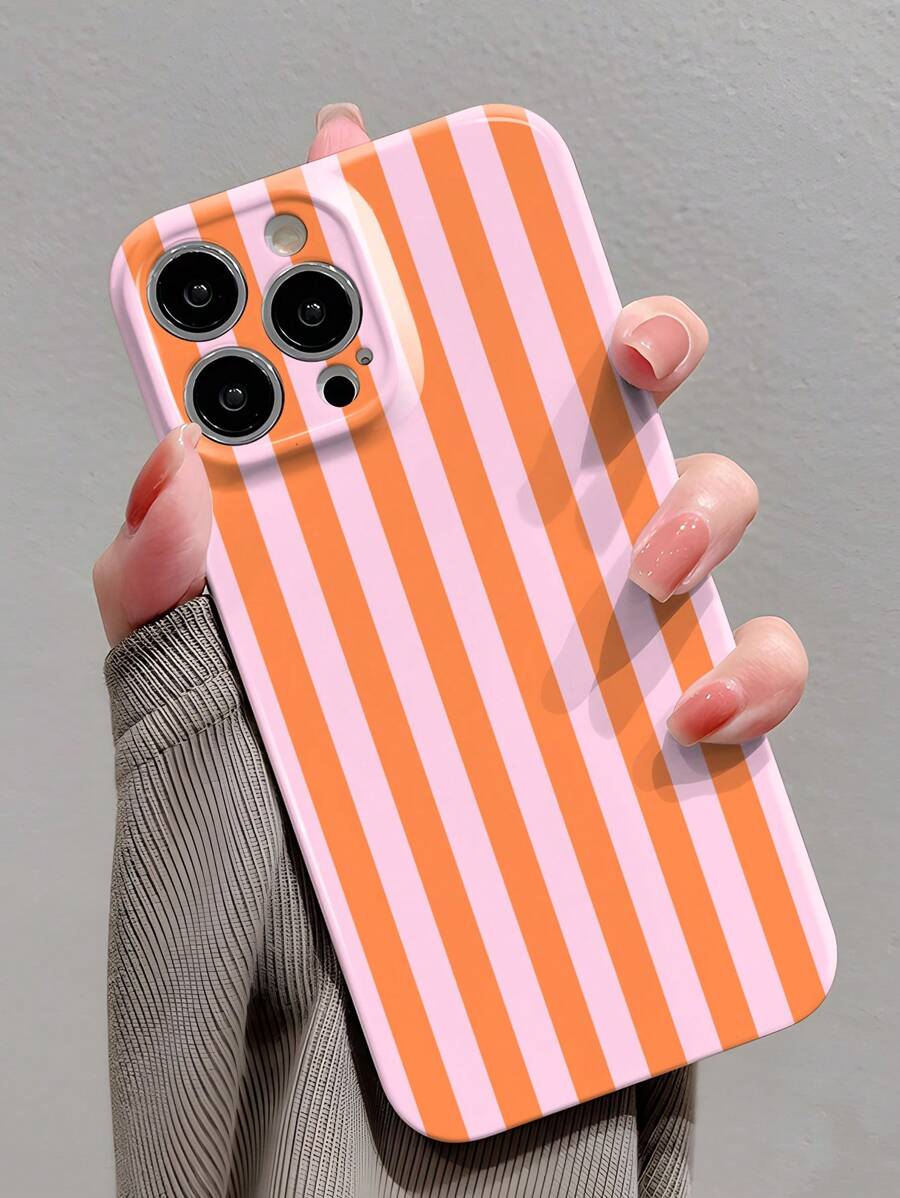 1pc Minimalist Striped Pattern Perforated Glossy Filament Case Full Coverage Hard Phone Shell Compatible With IPhone 11/12/13/14/15/16 Pro Max Waterproof Shockproof Anti-Fall Scratch Resistant