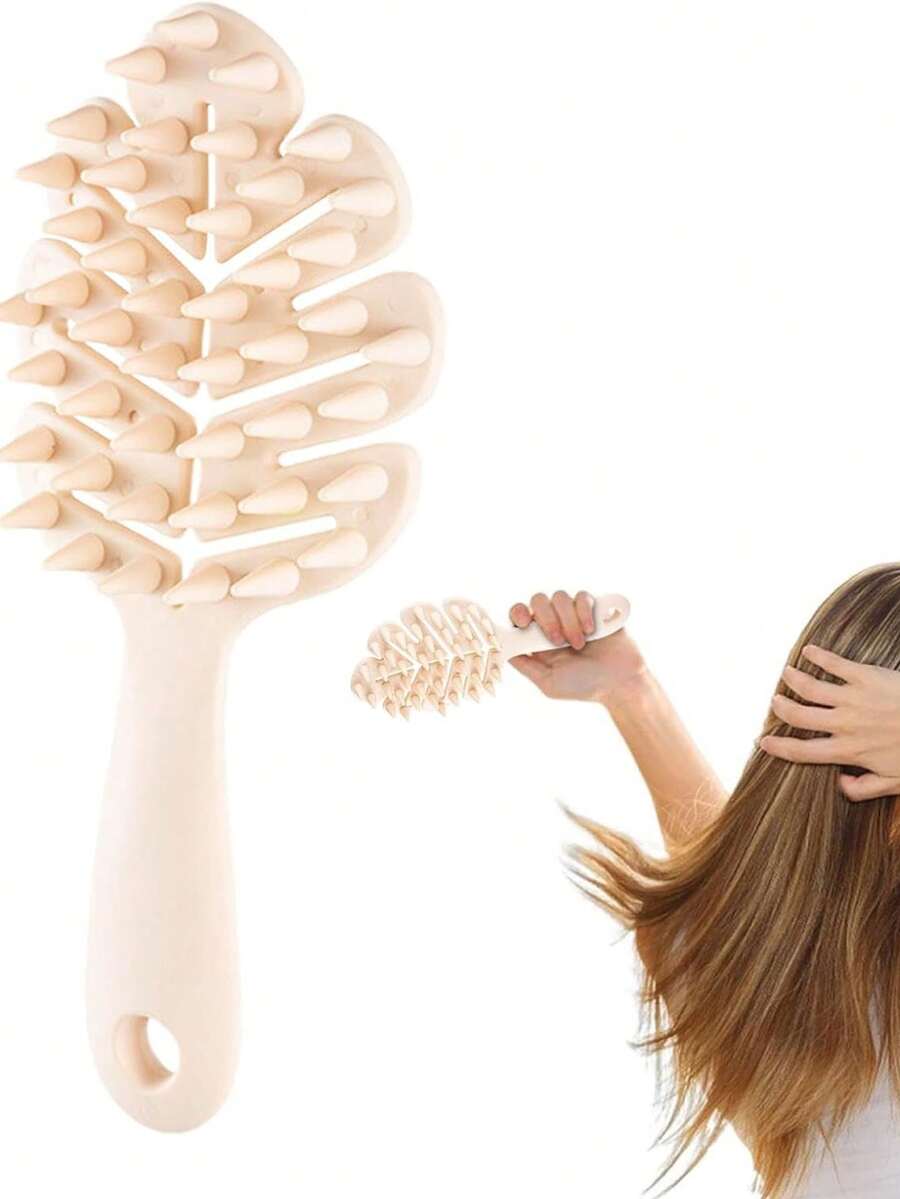 1pc Multi-Functional Hair Brush, Suitable For Dry & Wet Hair, Designed To Massage Scalp. It Features Leaf-Shaped Shampoo Brush, Convenient Handle, And Silicone Bristles To Make Shampooing Easy