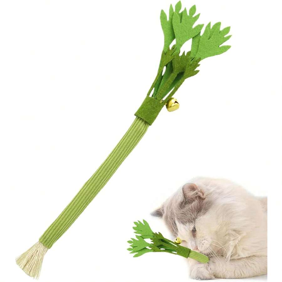 1pc Realistic Celery & Silvervine Cat Toy With Bell, Durable Chew Toy For Pets