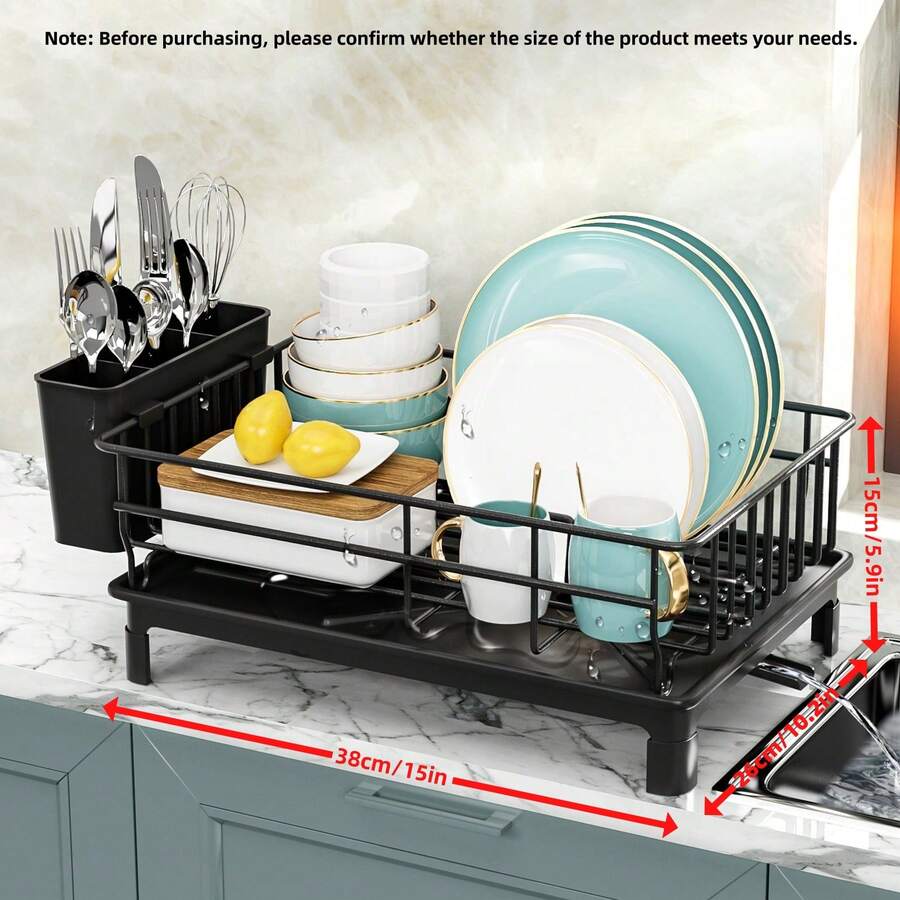 1pc Single-Layer Iron Dish Drying Rack With Cutlery Holder And Drip Tray, Suitable For Kitchen Countertop Storage Rack, Kitchen Accessories