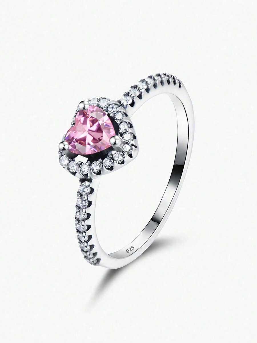 1pc Sparkling Pink Diamond Ring, Women's Jewelry, S925 Sterling Silver Inlaid Cubic Zirconia, Luxury & Exquisite Jewelry, Wedding Engagement Ring Gift