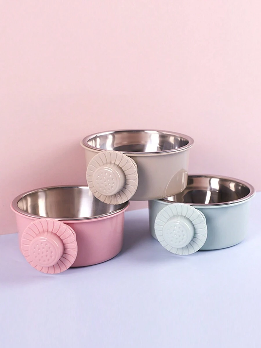1pc Stainless Steel Hanging Dual-Purpose Pet Bowl With Anti-Spill Fixation For Dog Crate Use