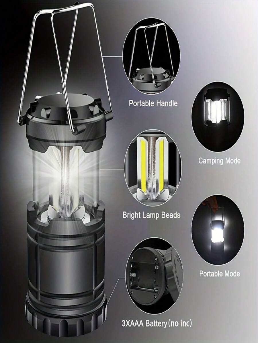 • 1pc Super Bright LED Camping Lantern - Portable Foldable Emergency Flashlight, Battery Powered (Batteries Not Included)