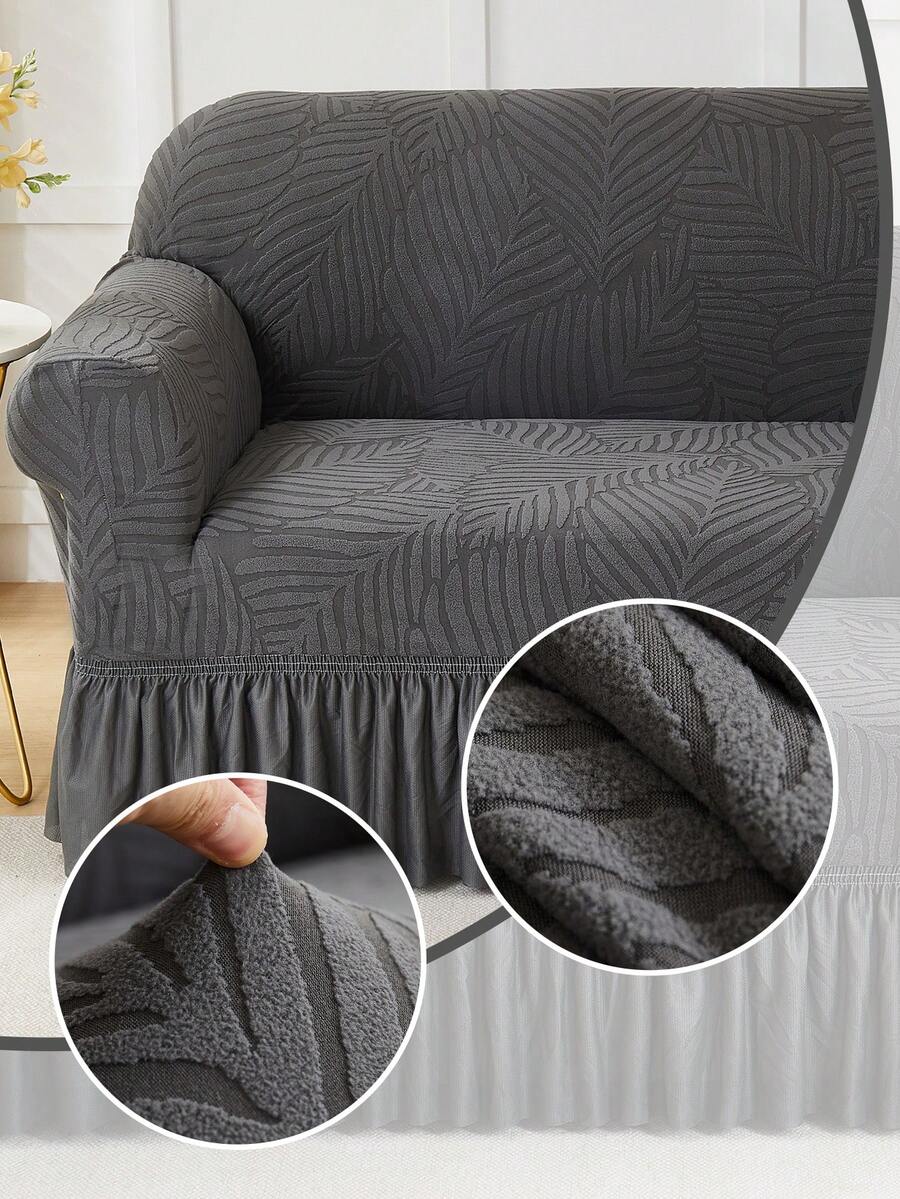1pc Thickened Elastic Leaf Pattern Sofa Skirt, Ruffled Design, Dust-Proof And Dirt-Resistant Sofa Slipcover, Suitable For Bench, Living Room Sofa, Living Room Furniture, Machine Washable, Dry Cleanable