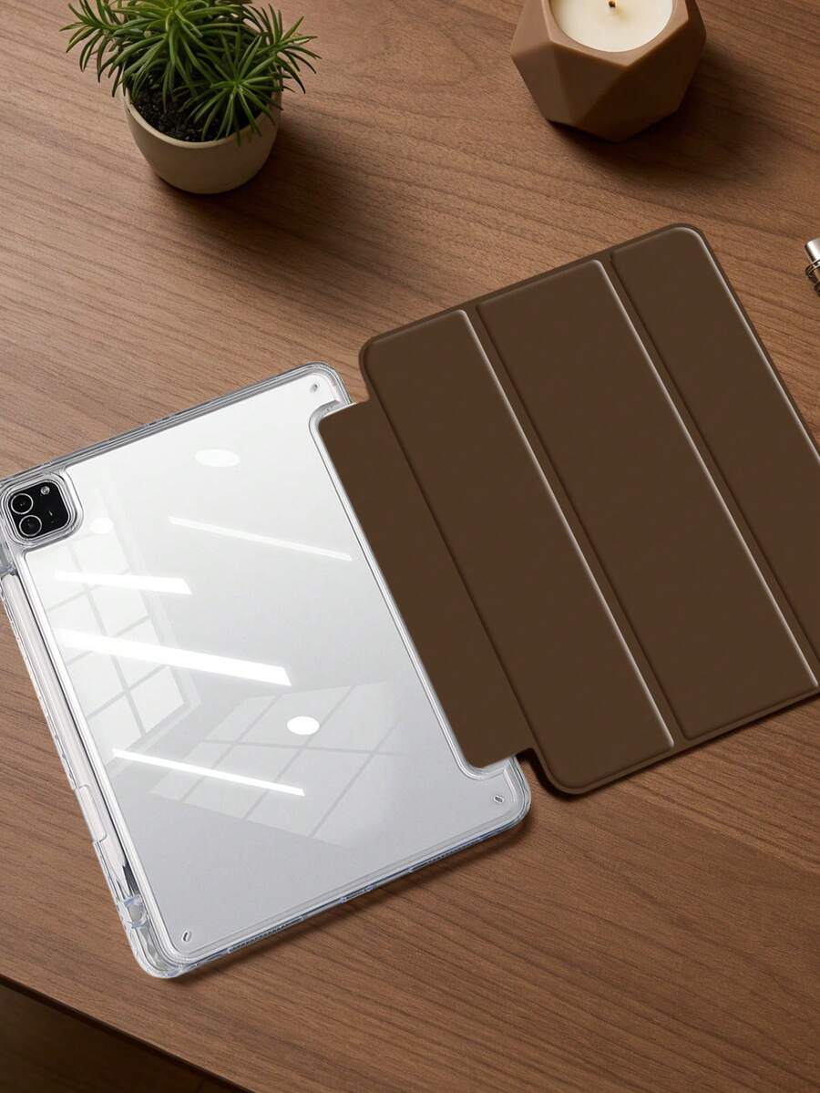 1pc Transparent Brown Acrylic Protective Case Compatible With Ipad A16 11th/10th Generation, Air 11/13, M3 2025, Mini 7 A17, Pro 2024, Air 11/13, M2 2024, Pro 11/13, M4 2024, Pro 12.9, 7/8/9 Gen, 10.2, 10th Gen, 10.9, Air 4/5, 10.9, Pro 11, 4/5/6 Gen, Mini 6. Hole Positions And Pen Slots May Vary Depending On The Model. The Case Has 2 Random Textures. Please Peel Off The Protective Film Before Use.