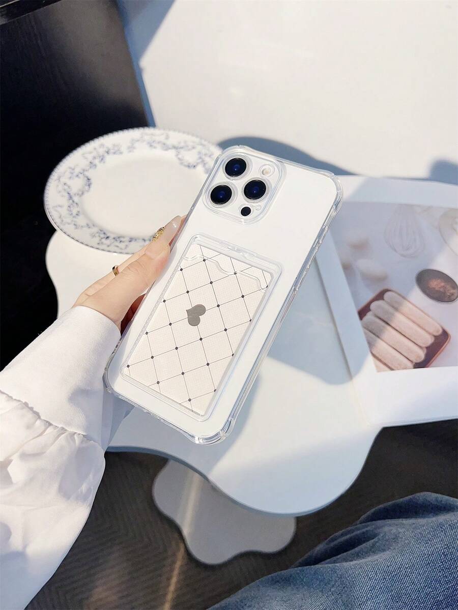 • 1pc Transparent Phone Case With Card Holder, Cute Protective Cover Compatible With Samsung Galaxy S25, S24, S24Plus/S24+, S24Ultra, S24FE, S20, S21, S22, S23 And Compatible With IPhone 11/11 Pro Max/12 Pro/12 Pro Max/13/13 Pro Max/14/14 Pro/14 Pro/15 Pro Max/16 Pro Max, 16E Silicone Phone Case - Clear - View 4