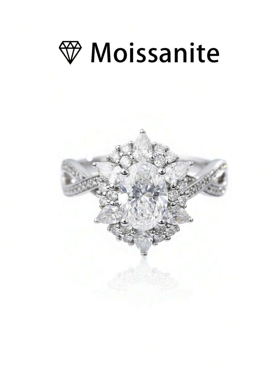 1pc Women's Wedding Ring, Hilary Flower Ring, 3.9g 925 Sterling Silver, 1.5 Carat Moissanite, Bohemian Palace Style, Luxury Engagement, Wedding, Anniversary, Valentine's Day Gift, Comes With Moissanite Certificate And Elegant Gift Box