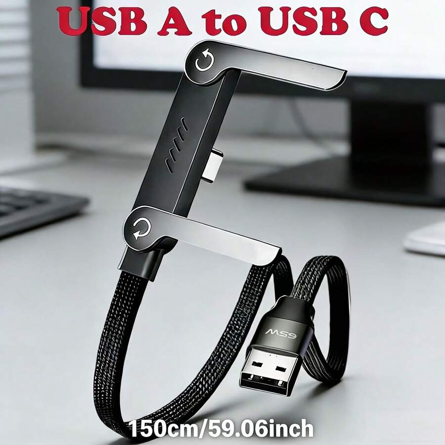 2026 Latest USB A To USB C Data Cable, 59.06inch Charging Cable, 65W Braided Fast Charging Cable With Built-In Phone Holder, T-Shaped Foldable Design, Compatible With IPhone 15-17 Series,Compatible With Samsung 10/S10+/S10, Compatible With LG V30