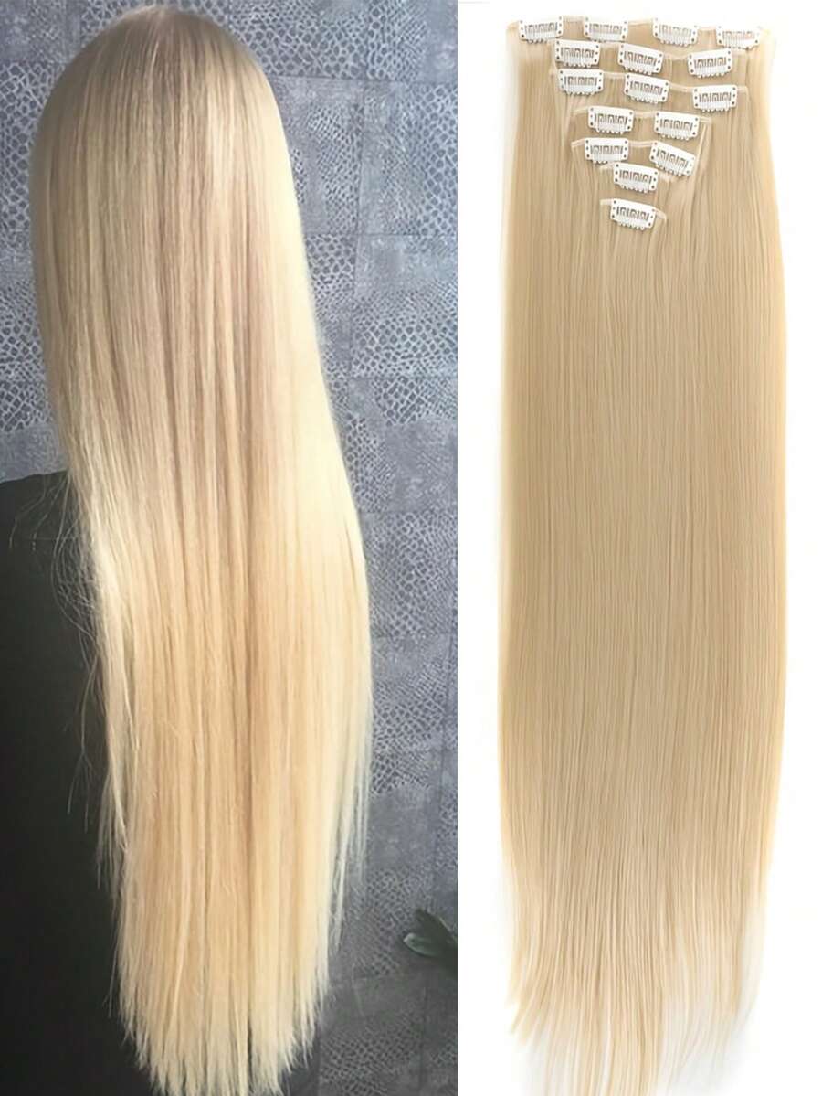 24Inch 16 Clips In Hair Extensions Long Straight Hairstyle Synthetic Blonde Black Hairpieces Heat Resistant False Hair Daily Use