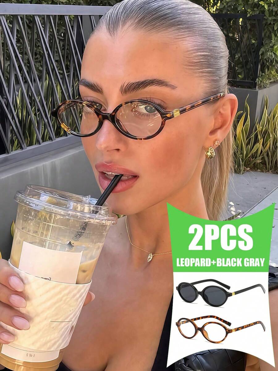2pcs Retro Hip Hop Small Oval Frame Glasses, Minimalist & Versatile Fashion Eyewear For Women