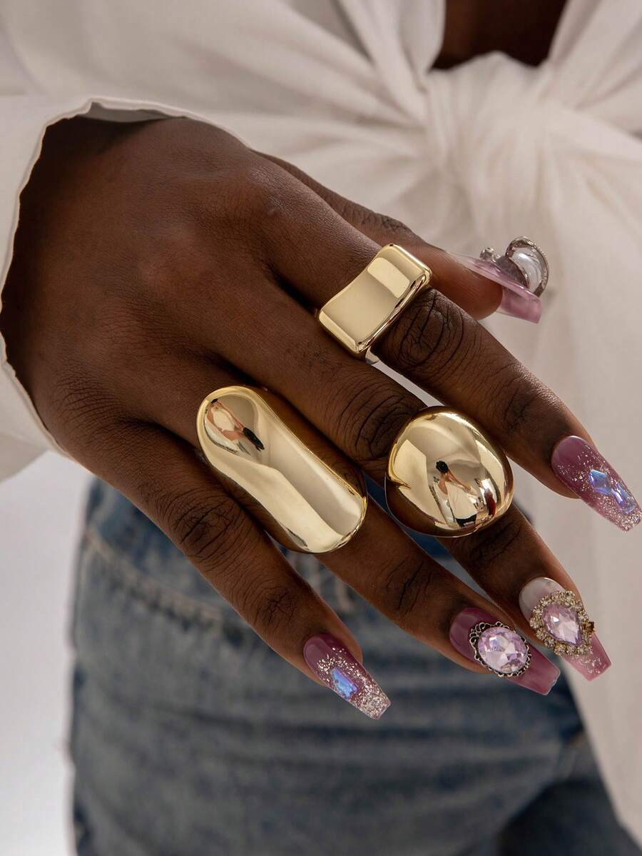 3pcs Minimalist Fashionable Versatile CCB Geometric Square & Round Creative Unique Women Jewelry Ring Set, Suitable For Daily, Party, Casual Gathering, Gift
