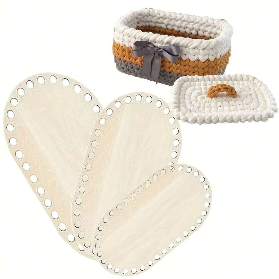 • 3pcs Oval Crochet Basket Bottom Plate Blank Crochet Basket, DIY Round Oval Wooden Board Small Embroidery Stretch Embroidery Frame Hole Board, 3 Sizes Wooden Floor Cover DIY Basket Weaving Crochet Supplies Bag Basket Weaving Supplies - Multicolor - View 3
