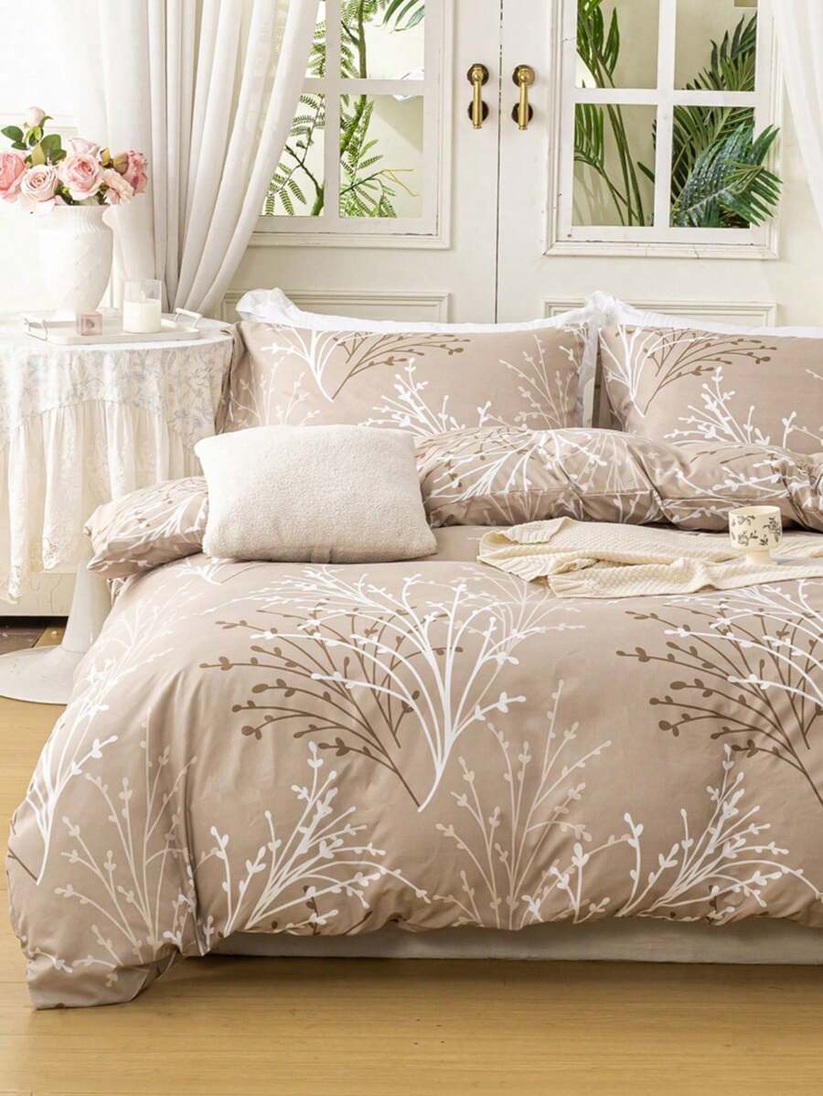 3pcs Piece Leaf Flower Pattern Duvet Cover Is Made Of Ultra Soft And Breathable High-Quality Ultra-Fine Fiber Fabric, Suitable For All Seasons, Machine Washable, Not Easy To Fade, Not Pilling, Anti Shrink, Wrinkle Resistant