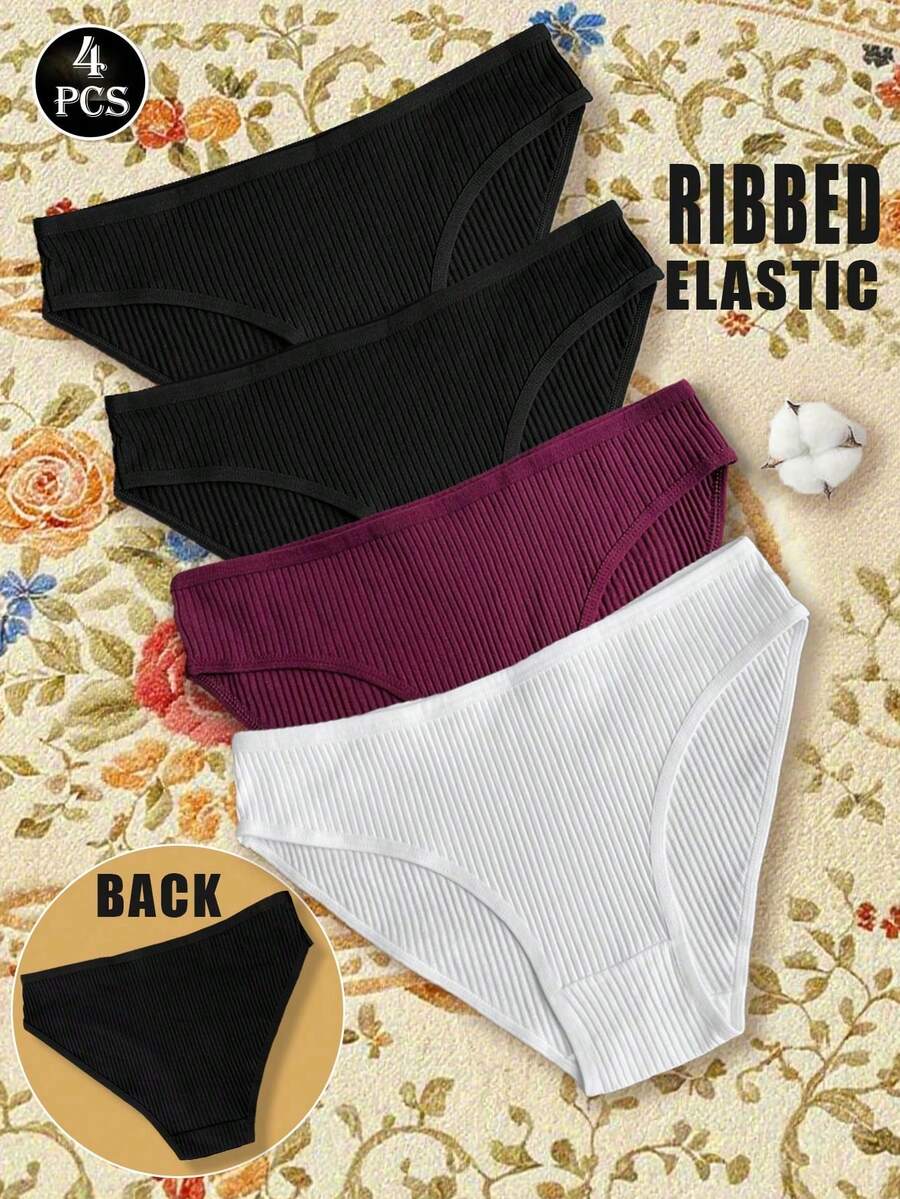 4pcs/Set Women's Comfortable Ribbed Briefs