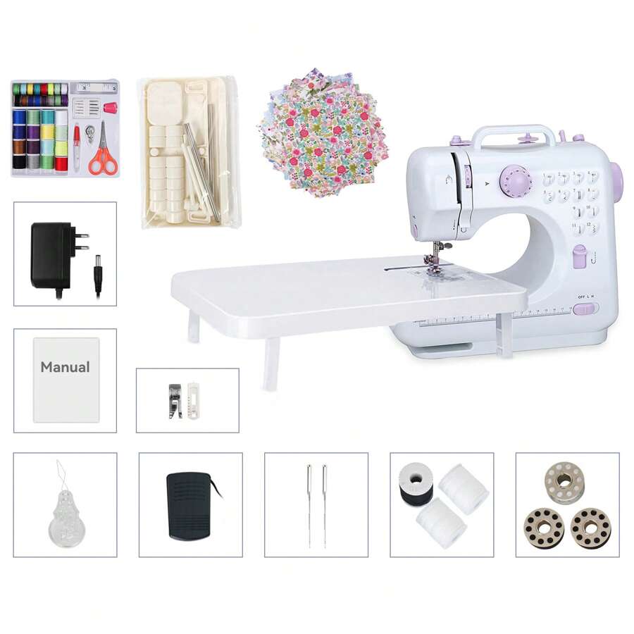 • 505A Mini Sewing Machine With 42-Piece Sewing Kit, 25 Patchwork Pieces And Thread Holder, EU Plug