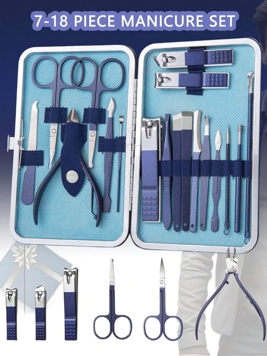 7-18pcs Manicure Set Pedicure Kit Nail Clippers Set Fingernail Clipper Set Professional Nail Grooming And Ear Pick For Travel