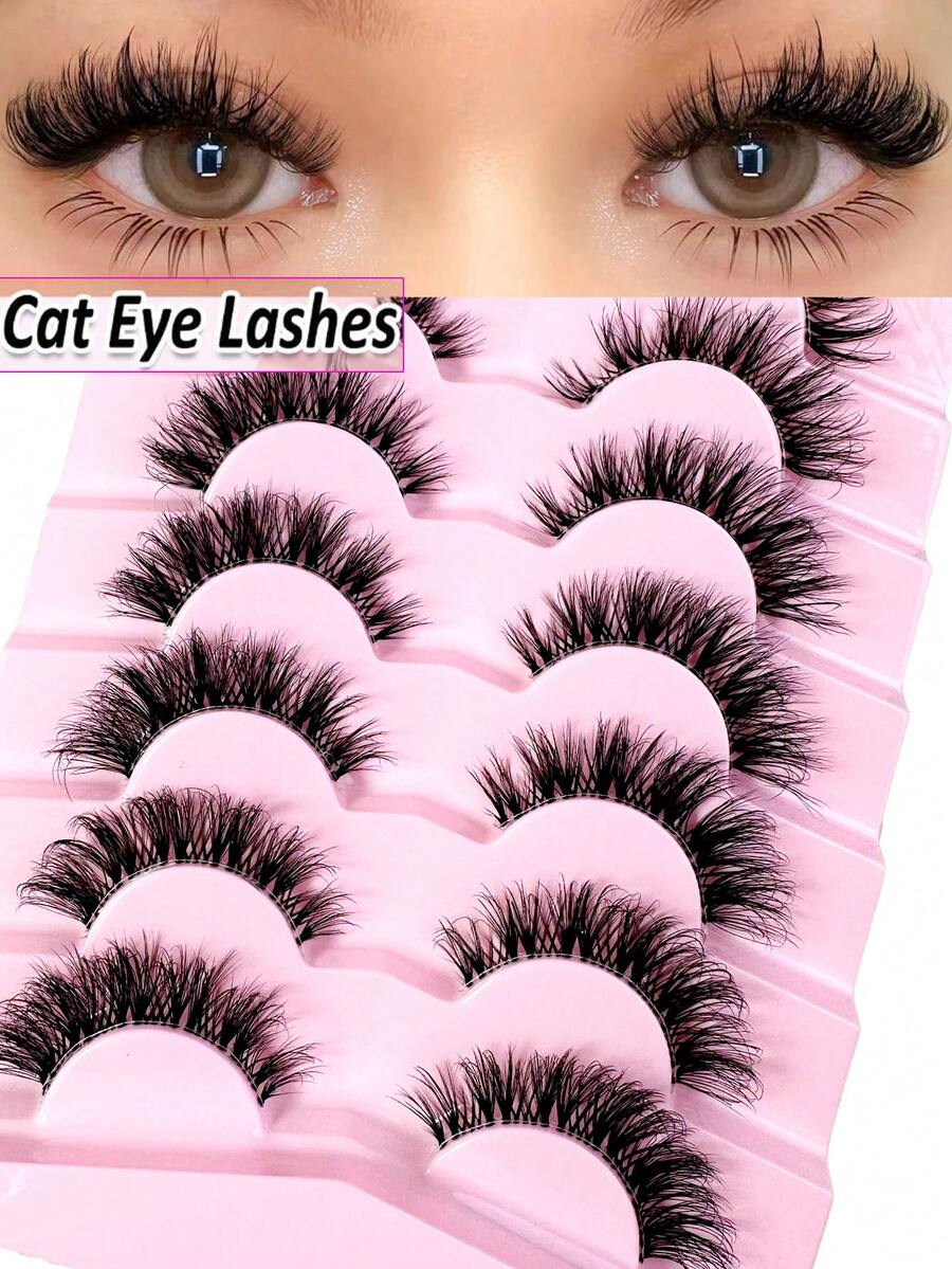 7 Pairs Fluffy Cat Eye Cartoon False Eyelashes - Natural Look, Suitable For Daily, Party And Other Occasions, Dense Transparent Lash Stems, Reusable, Easy To Apply - Beginner-Friendly False Lashes, Party Makeup, Durable Lash Material