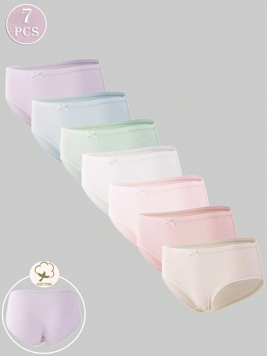 7pcs/Pack Teen Girls Solid Color Bow Decor Basic Comfort Panties