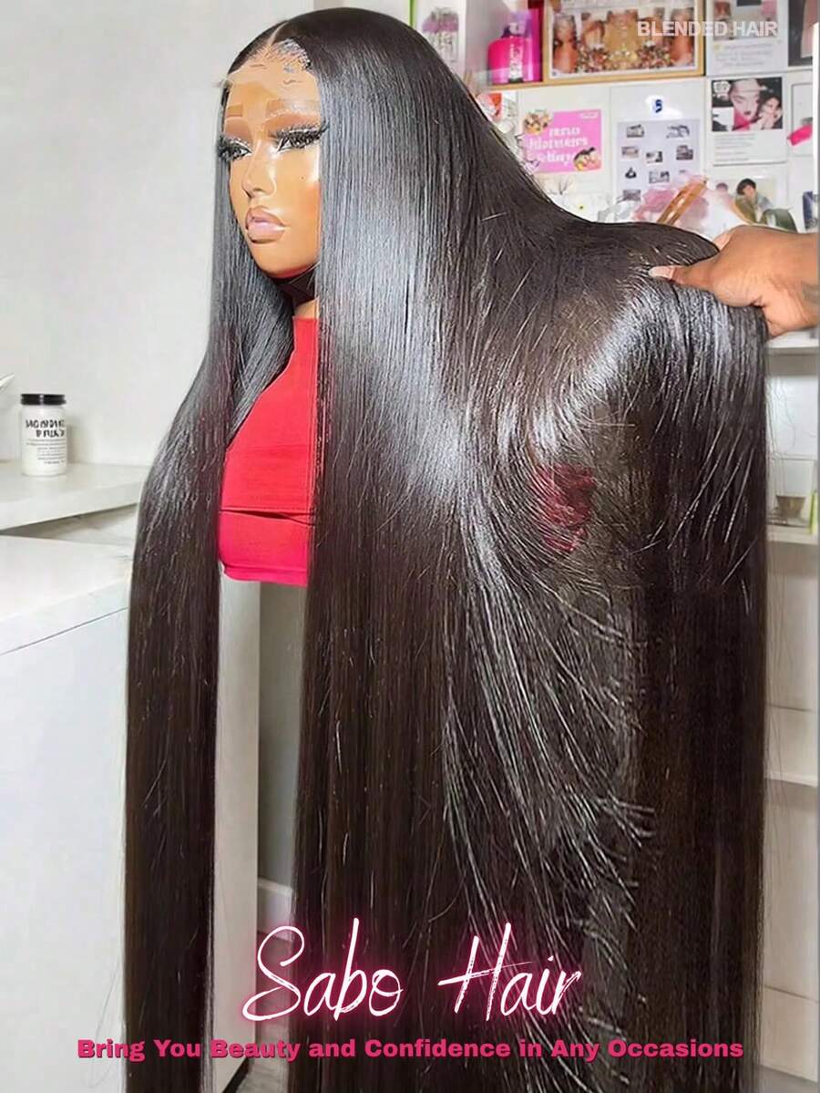 8-34 Inch Lace Front Wigs Human Frontal Hair 200 Density Straight Lace Front Wigs Blended Hair Pre Plucked 13x4 HD Lace Frontal Bleached Knots 5*5 Pre Everything Ready To Wear Closure #1B Black Glueless Wig For Women