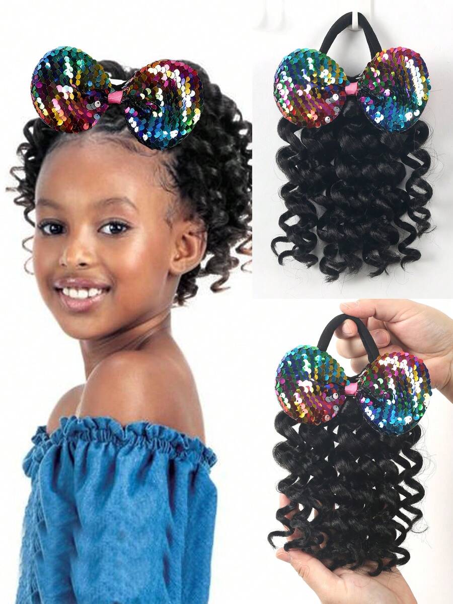 20 cm syntetisk hästsvansförlängning med elastisk lockig hästsvans med rosett barn barnhästsvanshårförlängning 1 st