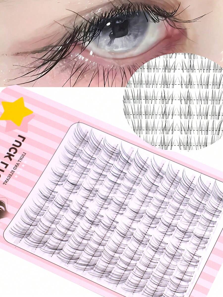 80pcs Soft, Delicate Oblique Winged Fox Style Baby Bent False Eyelashes, Transparent Stem, Natural, Messy, Fairy-Like C-Curl Eyelashes