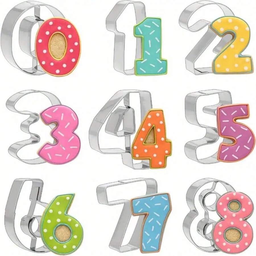 9pcs Stainless Steel Numeral Cookie Cutter Set 0-8 (6 Reversed As 9), Baking Tools For Birthdays, Weddings, Anniversaries, Bento Lunches